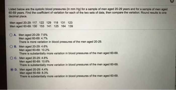 Solved A Sample Of Blood Pressure Measurements Is Taken For Chegg Com